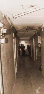 Длинный коридор. Два ряда одинаковых дверей и одинаковых ковриков. Рыжая штукатурка потолка с затейливыми узорами подтеков. В коридоре с равной вероятностью встречаются люди как в куртках и сапогах, так и в халатах и шлепанцах. Даже при несовпадении отдельных деталей картинка узнается безошибочно. Общага…