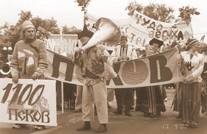 На фото: Псковская делегация на карнавале в Москве. Лето 2000 года.