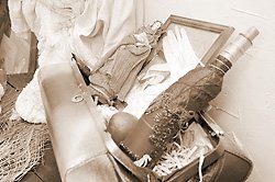 Сделанные по старинным образцам. Одежда из парчи, кружев, шёлка, золота, выкройки платьев – из журналов мод столетней – и больше – давности. Кружевные чулки, из-под подолов порой кокетливо мелькнёт подвязка или краешек панталон.