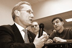 Псковская же аудитория посчитала, что НАТО со всеми ее демократическими ценностями служит лишь маской для хищных до нефти и прочих ресурсов американцев. Активно проявлявшие себя студенты исторического факультета выступили в роли главных обличителей военно-лицемерной организации Североатлантического договора. Но их достаточно аргументированный разнос был недостаточно силен для того, чтобы сломить сопротивление опытных дипломатов. Дипломаты, в конце концов, так же, как и студенты, читают российские газеты, смотрят телевизор и уже давно научились правильно отвечать на заранее известные вопросы.