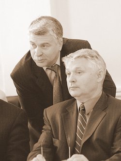 | Единороссы Алексей Сигуткин (сидит) и Дмитрий Хритоненков (стоит) верят, что всё у них будет хорошо. Фото: Александр Тимофеев. |