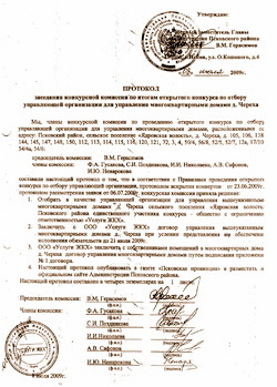 Время идёт, задачи не решаются. И тут я читаю на доске объявлений информацию о том, что 11 декабря 2008 года в помещении администрации Псковского района состоится конкурс по отбору управляющей организации для управления многоквартирными домами в деревне Черёха. В итоге конкурс не состоялся, так как желающих участвовать в нём не нашлось. Как выяснилось впоследствии, это был уже не первый конкурс. Первый по той же причине не состоялся 9 октября 2008 года.